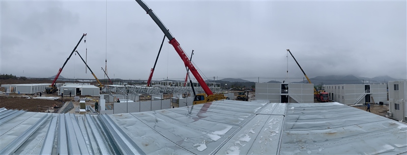 隔離點項目建設離完工僅剩十余天,自1月21日開工以來,各參建方努力調配一切可用的人力、物資,在全力保障項目建設的同時,努力節(jié)約采購成本。今日,施工現(xiàn)場近300人作業(yè),變壓器已安裝完成,打包房、板房、折疊房及水電設備等安裝進展迅速。